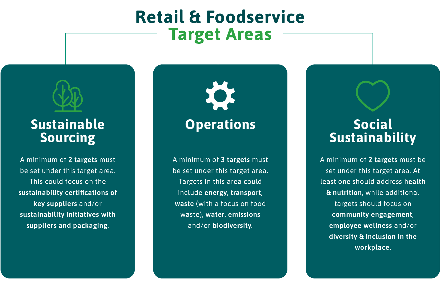 As part of the commitment to this charter, retail and foodservice operators must agree to clear objectives across four key areas: